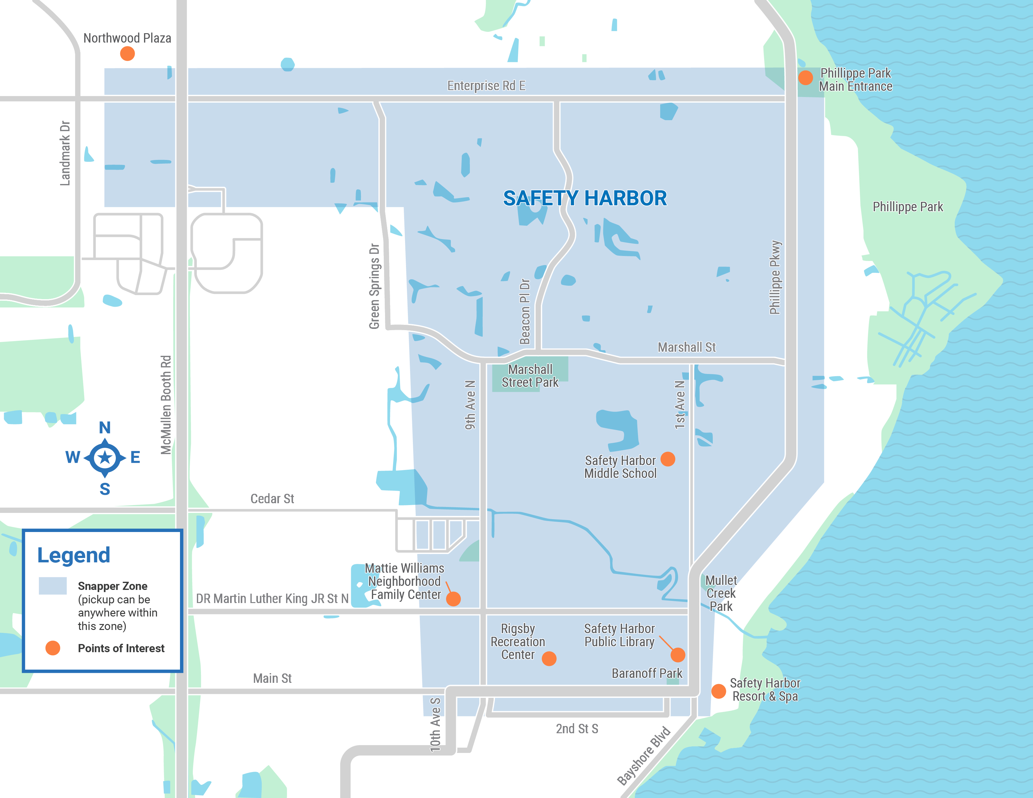 Snapper On Demand provides transportation in and out of designated zones in Clearwater and Safety Harbor.