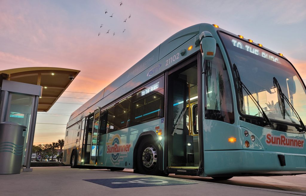 The Dog Bar is an off-leash dog park and full-service bar, with frequent visits from the best local food trucks in St. Pete (different ones are featured seven days a week!). Make sure you read up on their rules before you go for maximum safety and fun times. Remember in order to bring your own fur-ever friend on the SunRunner, they must be able to fit into carriers to follow the onboard rules, or they must be a certified service animal.